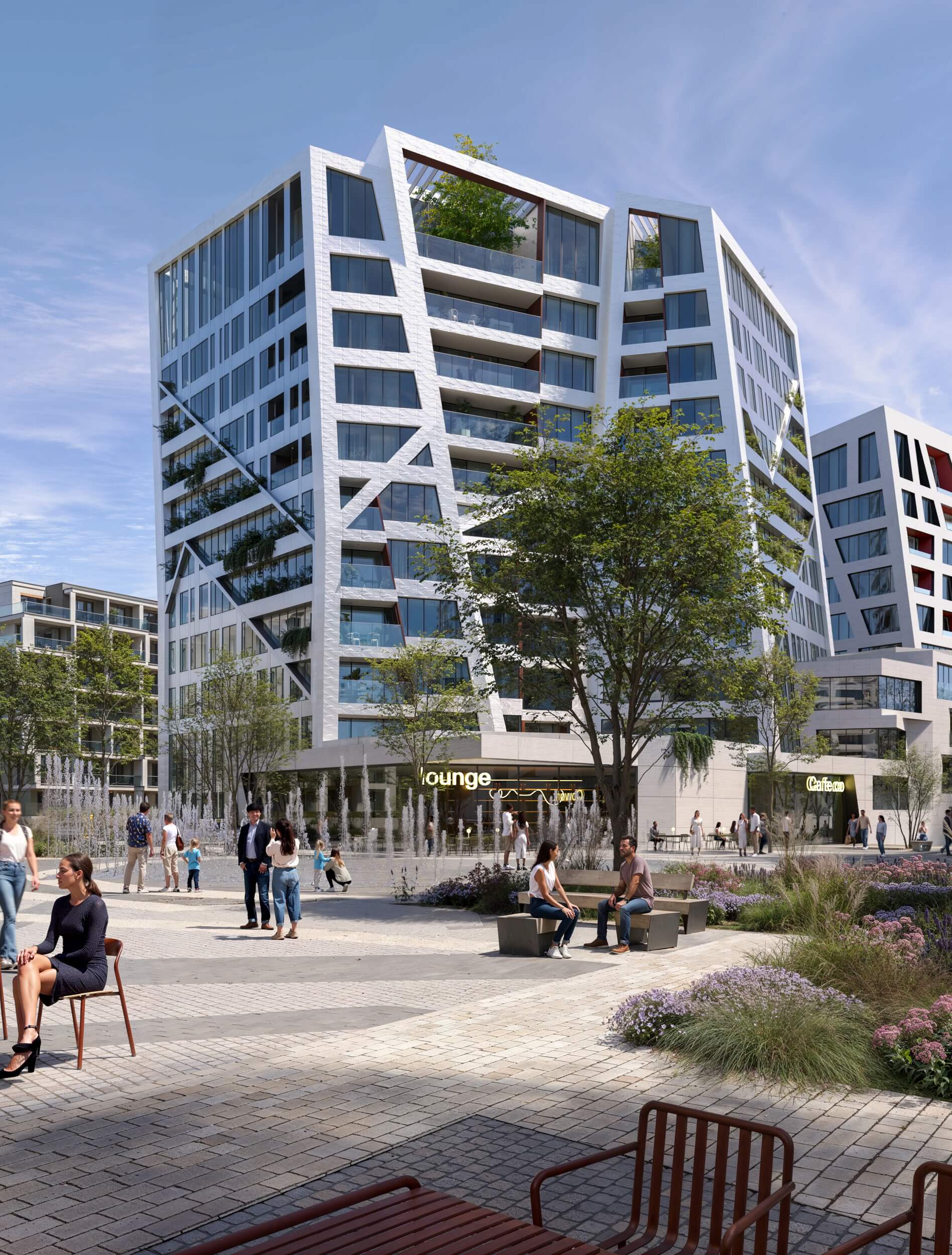 Veřejný prostor budou rámovat čtyři unikátní rezidenční objekty Sekyra Flowers . Každá z budov bude „vzkvétat“ ve formě třech třpytivých útvarů , které působí zároveň organicky i geometricky. Věže se zelenými střechami budou obložené kovovými dlaždicemi, které budou zachycovat a odrážet světlo a tím evokovat dojem rozkvetlých květů. Sekyra Flowers budou zahrnovat byty všech velikostí – od malých studiových jednotek po penthousy s rozlehlými terasami.